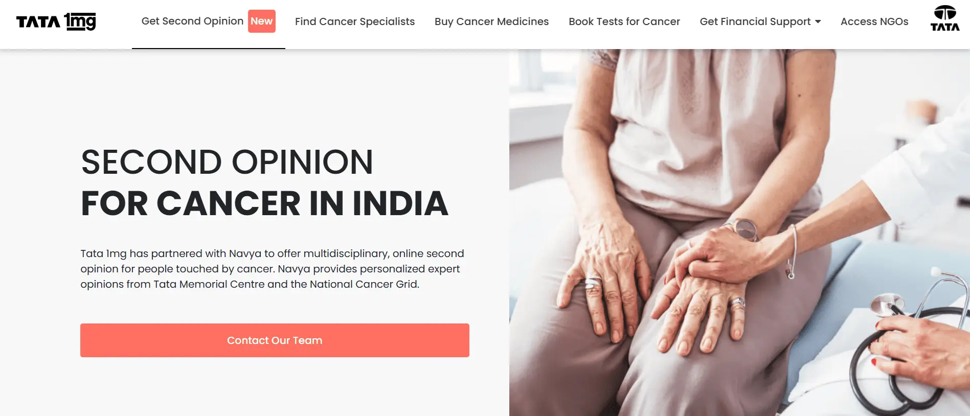 Last one on our list of companies making your life easy is TATA 1 mg. In partnership with Navya, Tata 1 mg provides multidisciplinary second opinion for people “touched by cancer.”